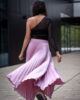 Wild Rose nie otrzymała swojej nazwy przypadkowo. Róża od wieków uznawana jest za kwiat pełen wdzięku i harmonii, symbol subtelnej, lecz nieposkromionej siły natury. Podobnie jak ona, ta spódnica łączy w sobie delikatność i moc. Jasnoróżowy odcień materiału, opalizujący i łapiący światło przy każdym kroku, sprawia, że sylwetka nabiera lekkości, a od jej subtelnego blasku trudno odwrócić wzrok.